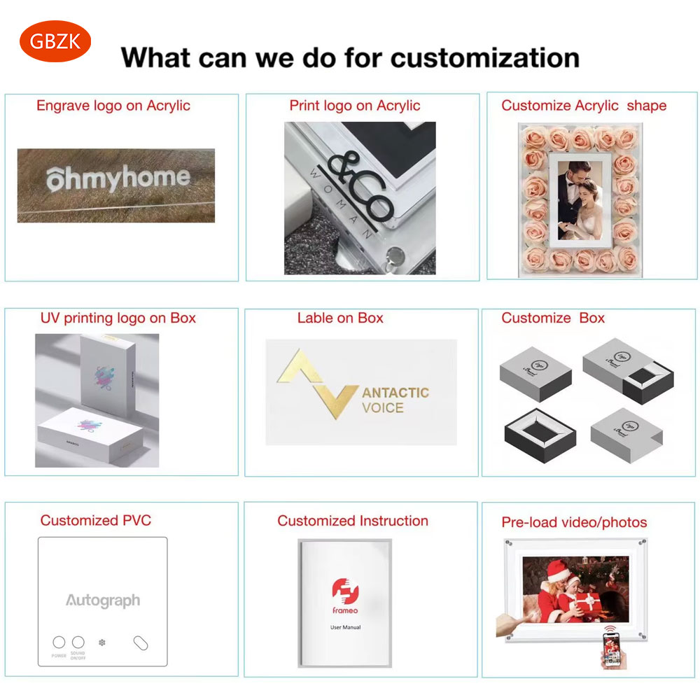 Gbzk Electronic Photo Frame Provides High-Definition Touchscreen Display with 4gb to 64gb of Memory (Supports Customization of Larger Memory)